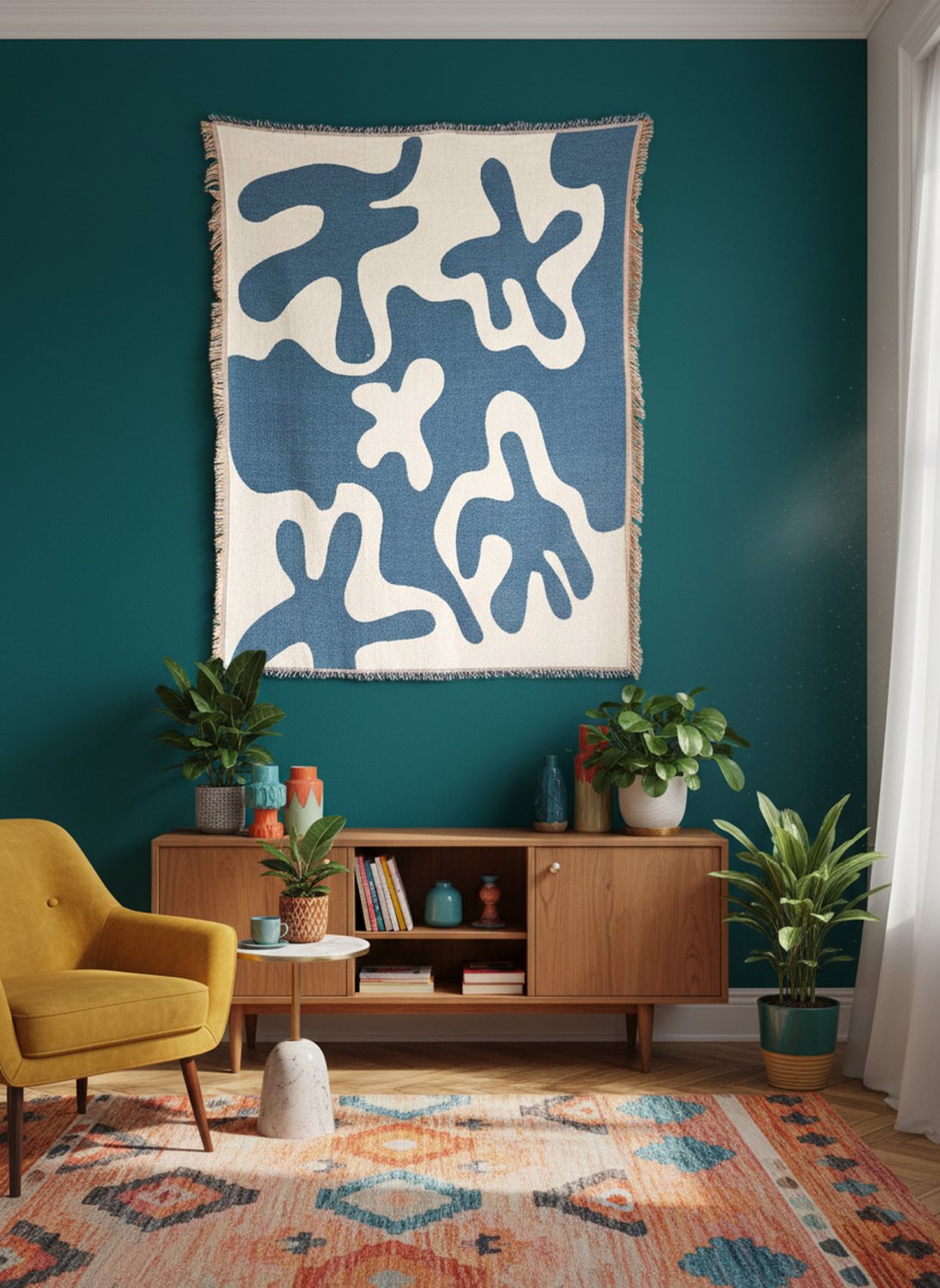 Esta manta versátil une conforto e design de forma única. Pode ser usada como peça decorativa no sofá ou pendurada na parede como tapeçaria. Ideal para criar um ambiente acolhedor e cheio de personalidade.