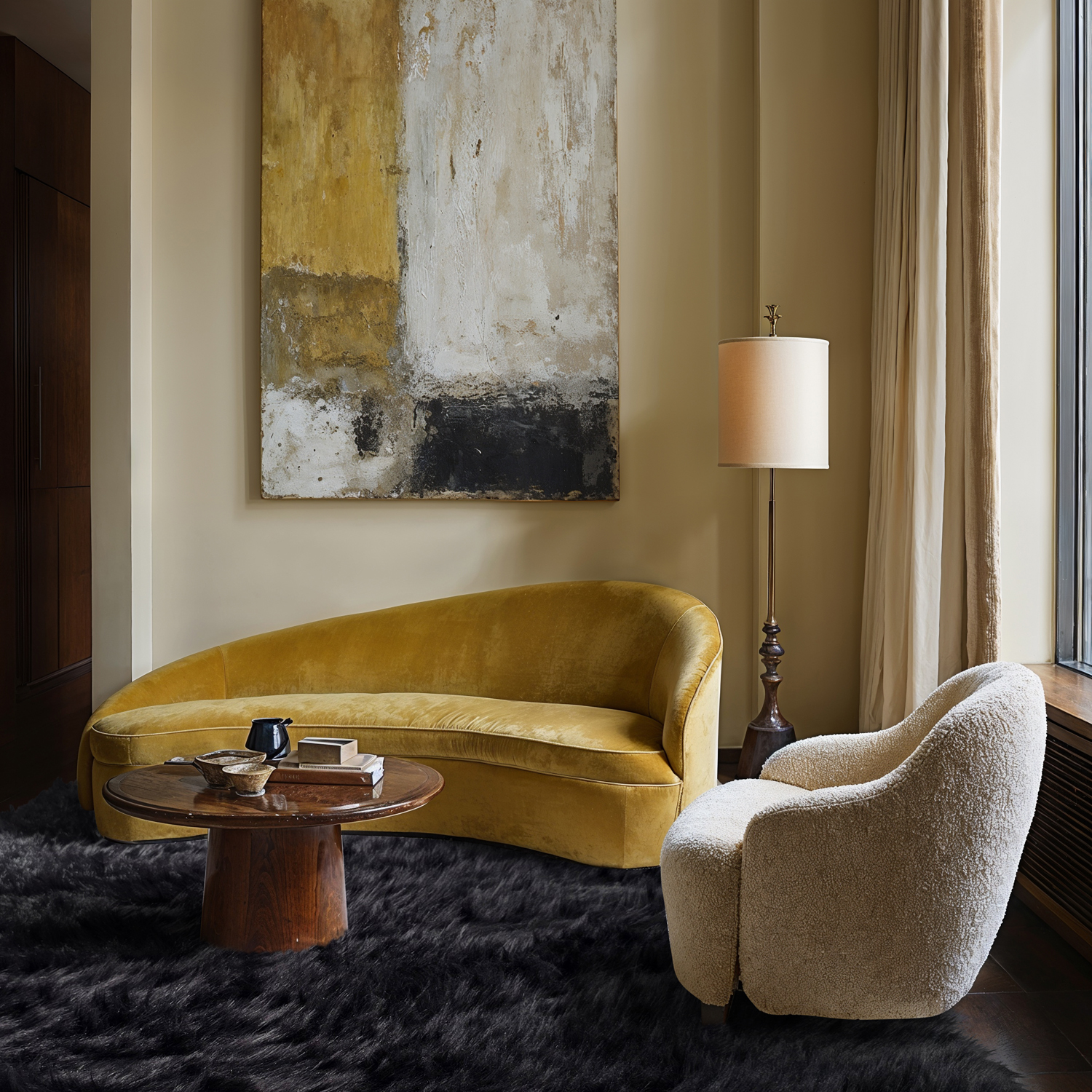 Tapete shaggy luxuosamente macio com pelo longo e textura semelhante a pele, criando uma sensação acolhedora e quente. A estrutura felpuda oferece conforto e estilo, ideal para salas e quartos. Um tapete que convida ao relaxamento descalço.