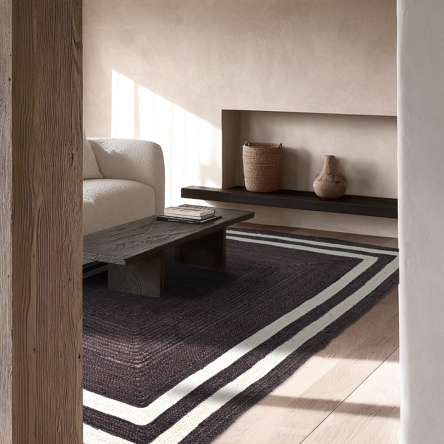 Tapete de juta - Jessore (taupe escuro/branco)