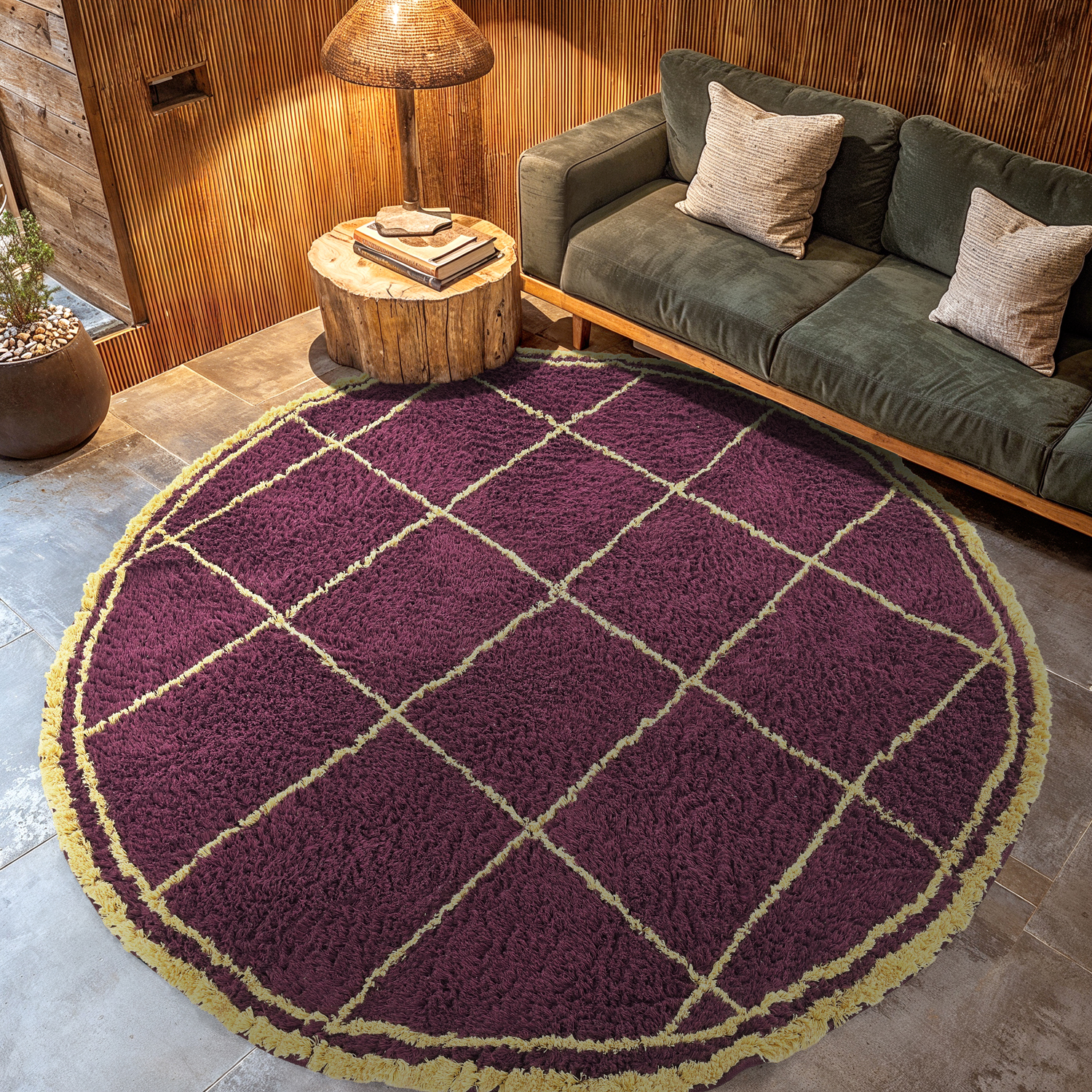 Tapete redondo - Lana Natural Cotton Shaggy (borgonha/amarelo)