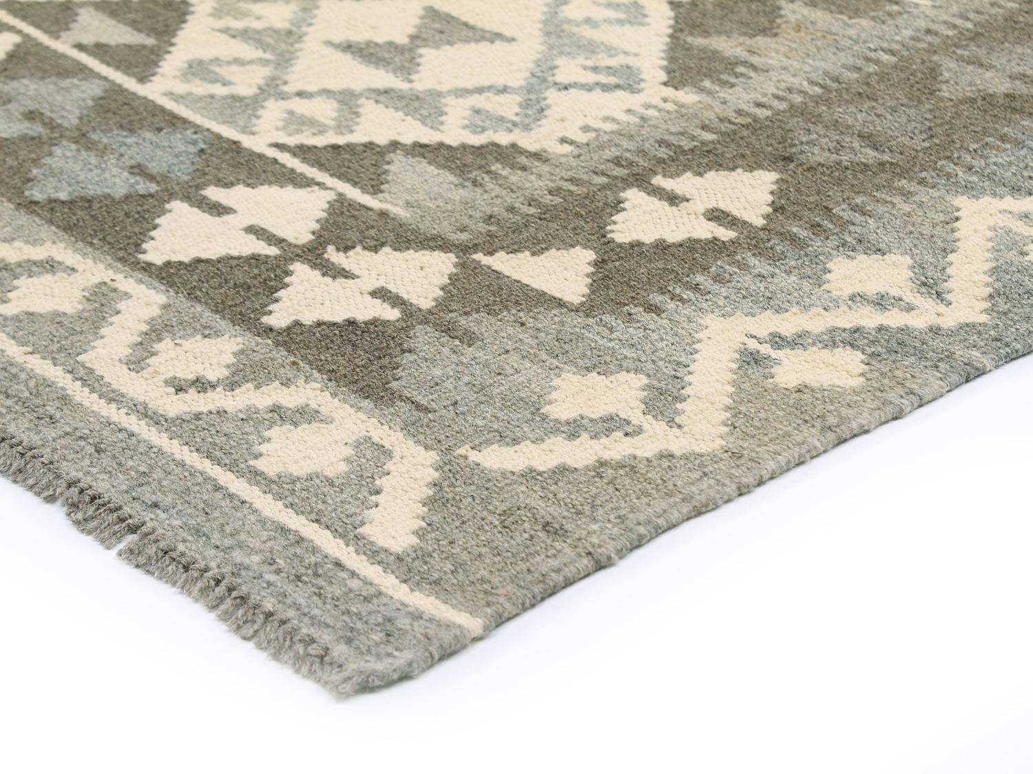 O kilim oriental combina uma estrutura tecida em plano com lã natural – um tapete leve e flexível, fácil de colocar no hall, na sala de estar ou sob a mesa de jantar. O perfil delgado é ideal para sobrepor a um tapete maior.