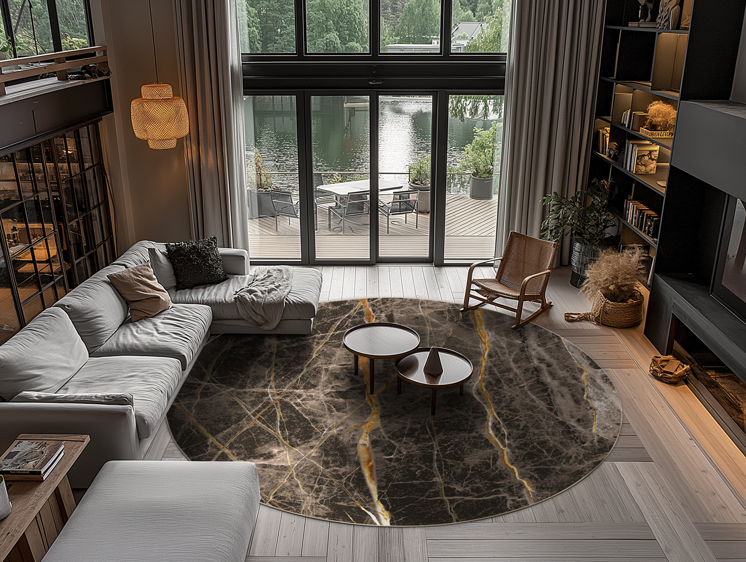 Tapete redondo - Aris (preto/dourado)