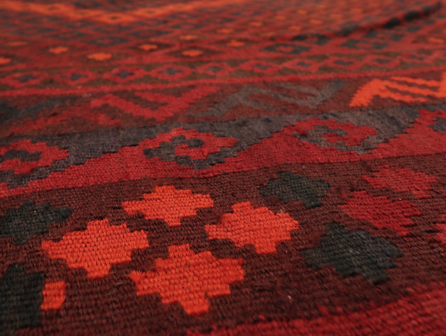 O kilim oriental combina uma estrutura tecida em plano com lã natural – um tapete leve e flexível, fácil de colocar no hall, na sala de estar ou sob a mesa de jantar. O perfil delgado é ideal para sobrepor a um tapete maior.