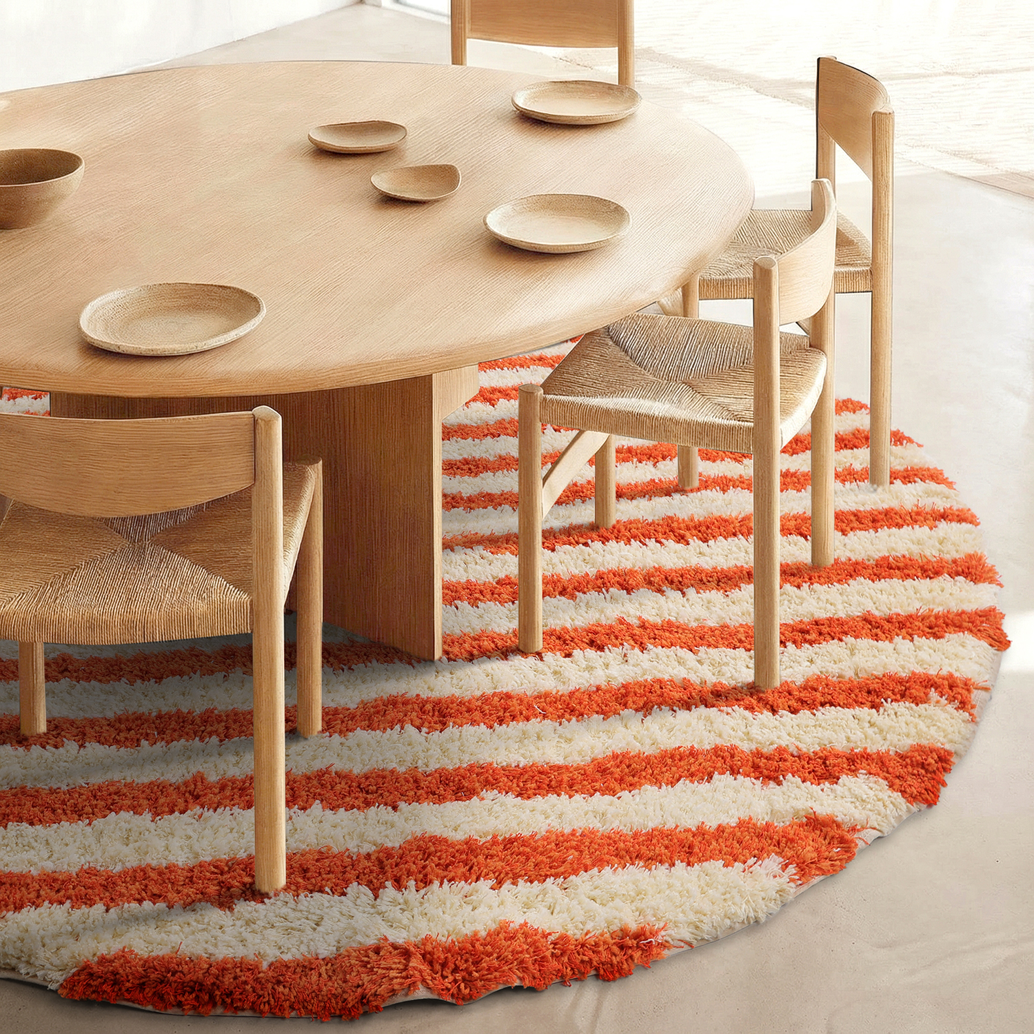 Tapete redondo - Thira Stripe Cotton Shaggy (amarelo claro/laranja claro)