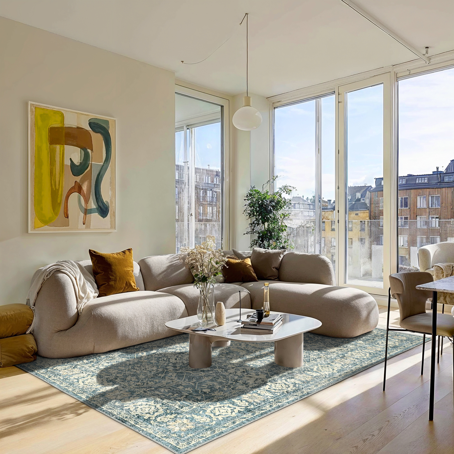 Crie uma atmosfera intemporal em casa com este tapete de tecelagem plana em elegante estilo vintage. O design fino e resistente torna o tapete fácil de colocar e de manter, enquanto o padrão envelhecido com charme acrescenta calor e carácter à divisão. Perfeito para debaixo da mesa de jantar, na sala de estar ou no hall de entrada – um tapete que combina funcionalidade prática com design clássico.
