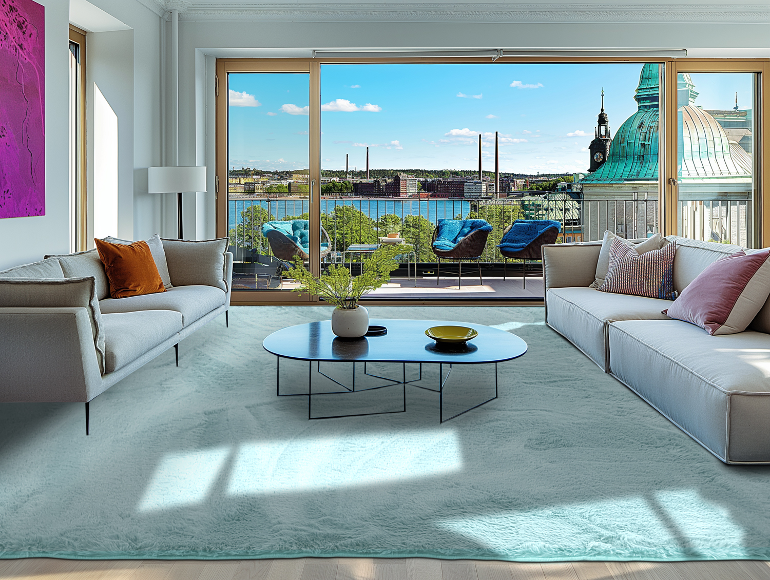 Matta i mjuk rya. Mattan är otroligt len, som en kaninpäls, och den tunna vackra och tätt sittande luggen skapar en böljande mattan beroende åt vilket håll man drar mattans strån.