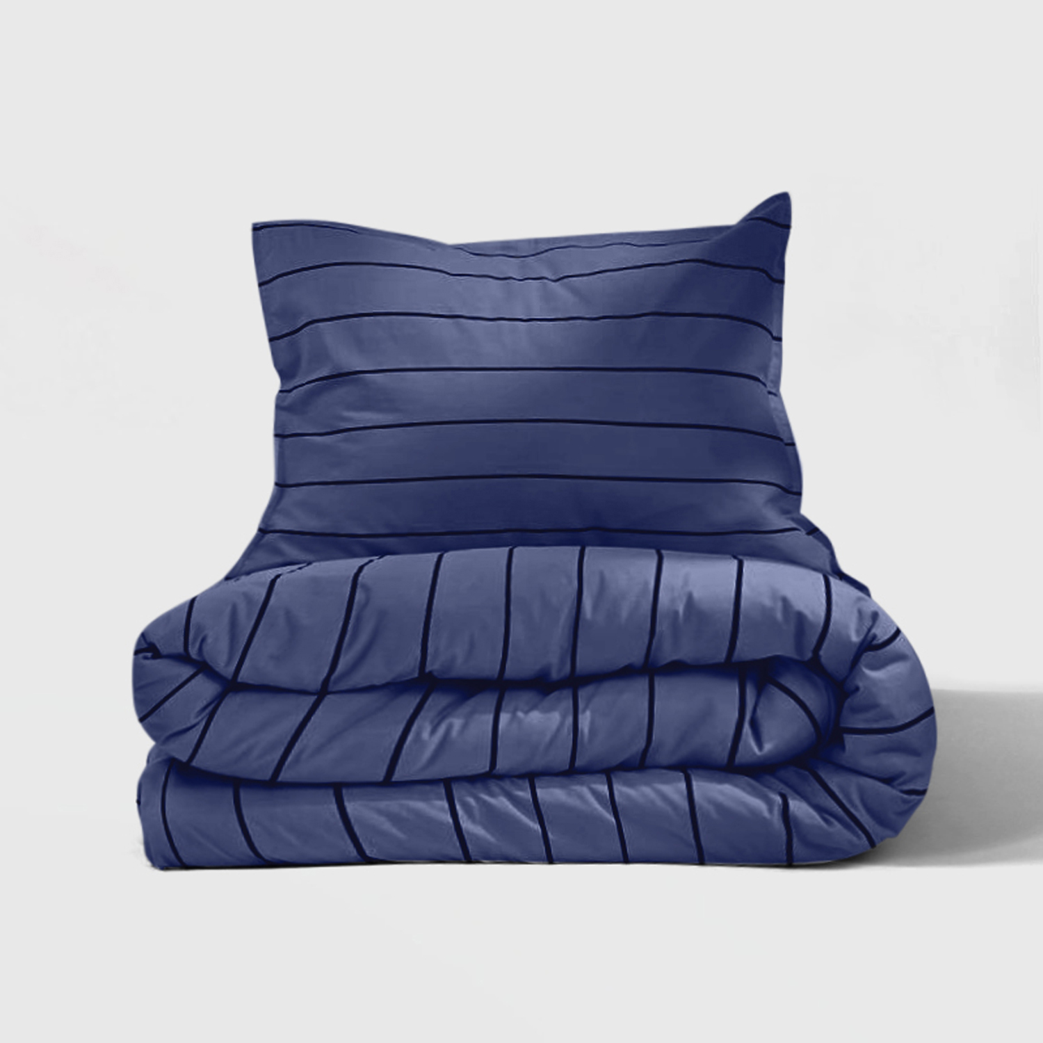 Este conjunto de capa de edredão apresenta listras azul-escuras e está disponível em várias cores para se adequar a diferentes estilos de interiores. Quer prefira um estilo minimalista e escandinavo ou algo mais vibrante, o conjunto combina facilmente com o seu quarto, criando um ambiente elegante e harmonioso.