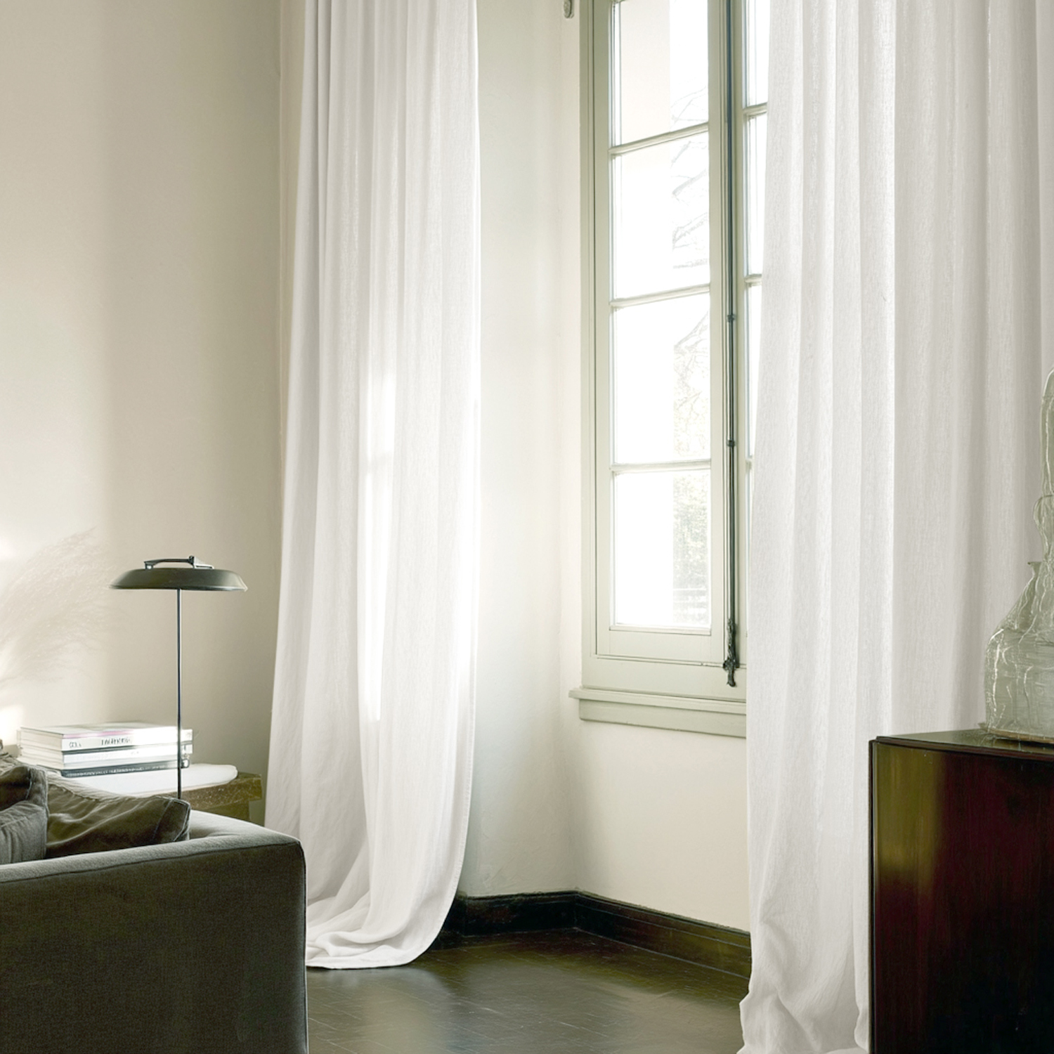 Nossas cortinas finas são perfeitas se você deseja filtrar muita luz natural no ambiente, mas ainda quer o conforto da privacidade em sua casa. O tecido fino também permite uma queda natural e bonita. As cortinas são feitas de uma imitação de linho que cria um espaço moderno e elegante em sua casa. Disponíveis em designs clássicos lisos e padrões modernos estampados.