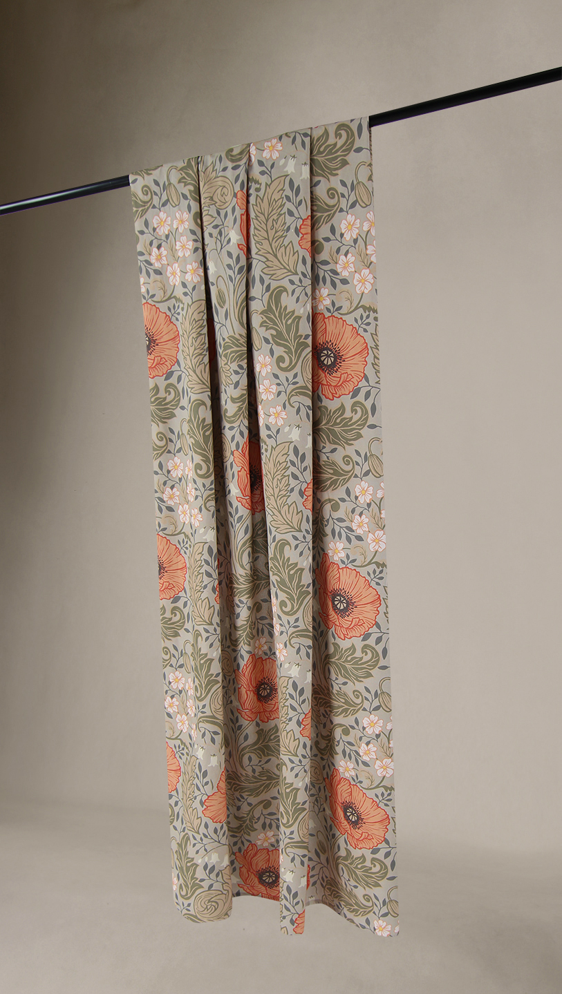 A coleção Poppy está disponível em duas combinações de cores e as cortinas podem ser adquiridas em dois tamanhos diferentes. Todas as cortinas vêm com uma faixa multifuncional, garantindo uma instalação prática e versátil.