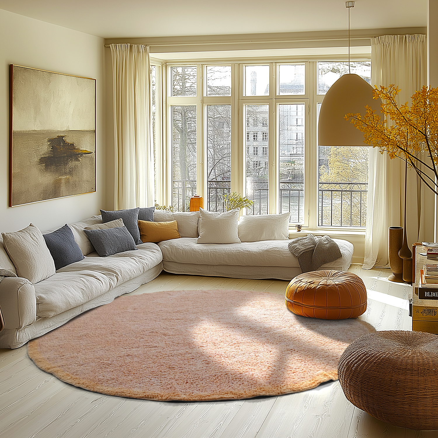 Tapete redondo - Celina Natural Cotton Shaggy (rosa/bege)