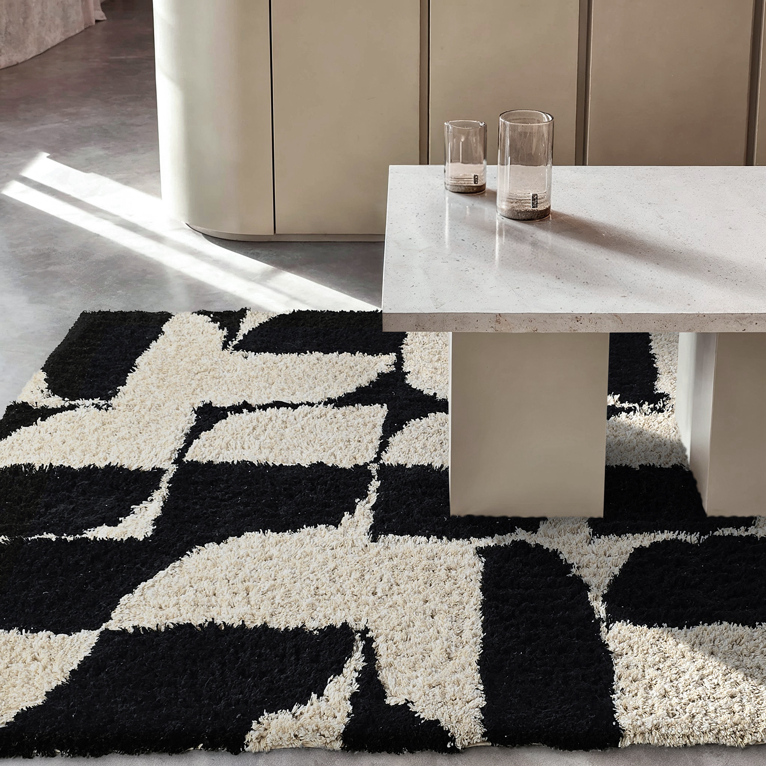 Tapetes felpudos - Marvao Natural Cotton Shaggy (branco sujo/preto)