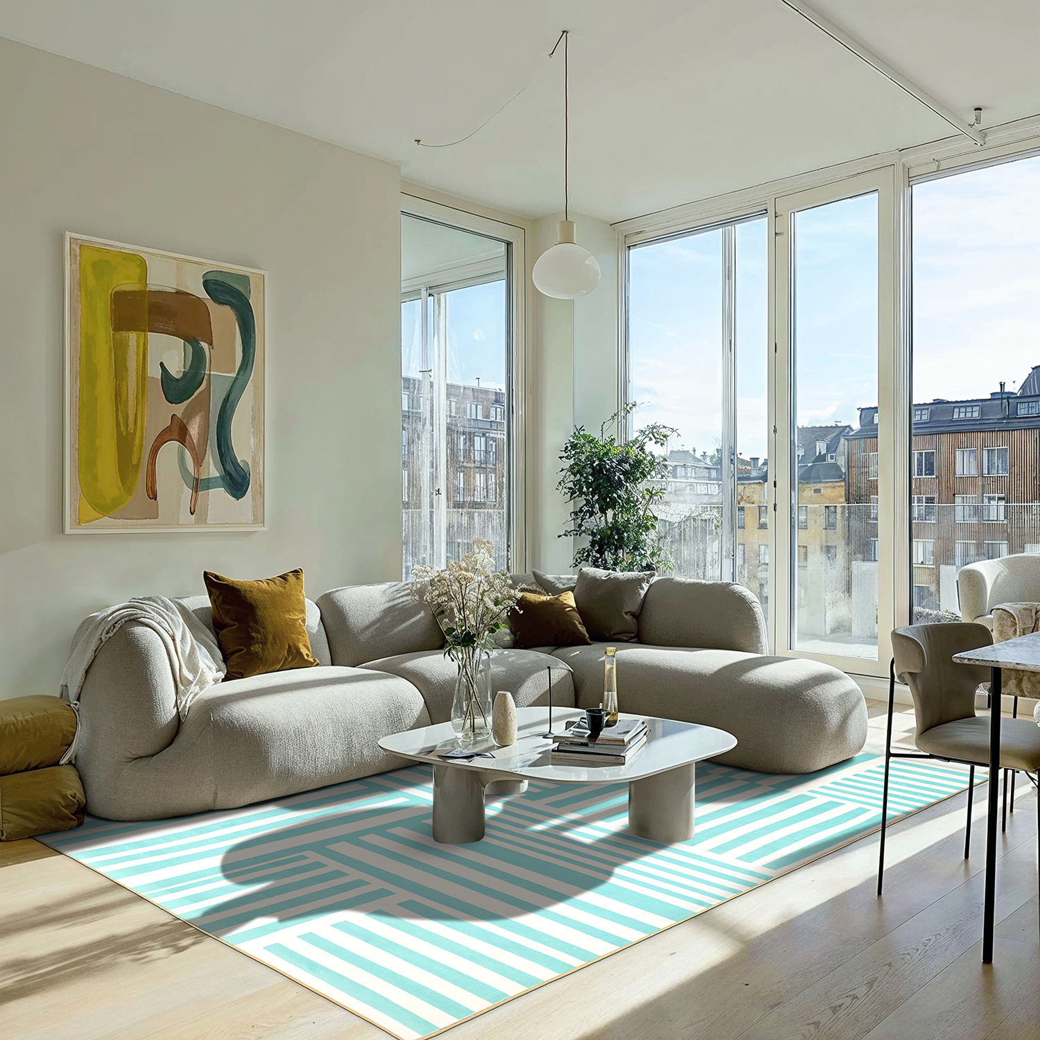 Tapete moderno da coleção Art Line da Trendcarpet – agora numa versão melhorada com maior espessura e peso, oferecendo uma sensação mais suave e robusta sob os pés. Perfeito para a sala de estar ou qualquer outro espaço onde possa destacar-se e valorizar a decoração.