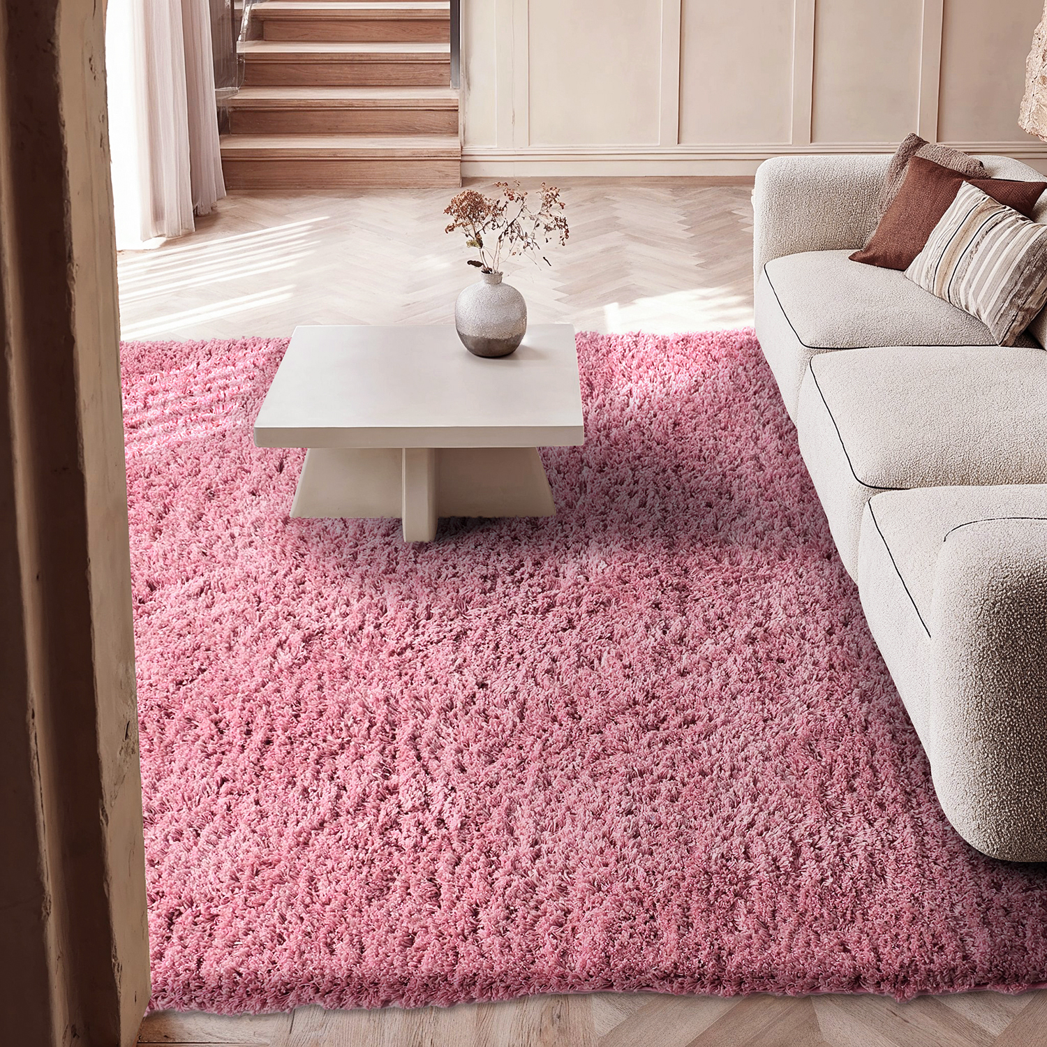 Um elegante tapete shaggy de cor lisa que cria uma atmosfera acolhedora e convidativa no ambiente. Fabricado com um material macio e agradável, proporciona conforto ao caminhar e no uso diário. O pelo longo e denso confere um aspeto aconchegante e ajuda a reduzir o ruído, tornando-o ideal para salas de estar e quartos. O design de cor lisa facilita a combinação com diferentes estilos de decoração e paletas de cores.