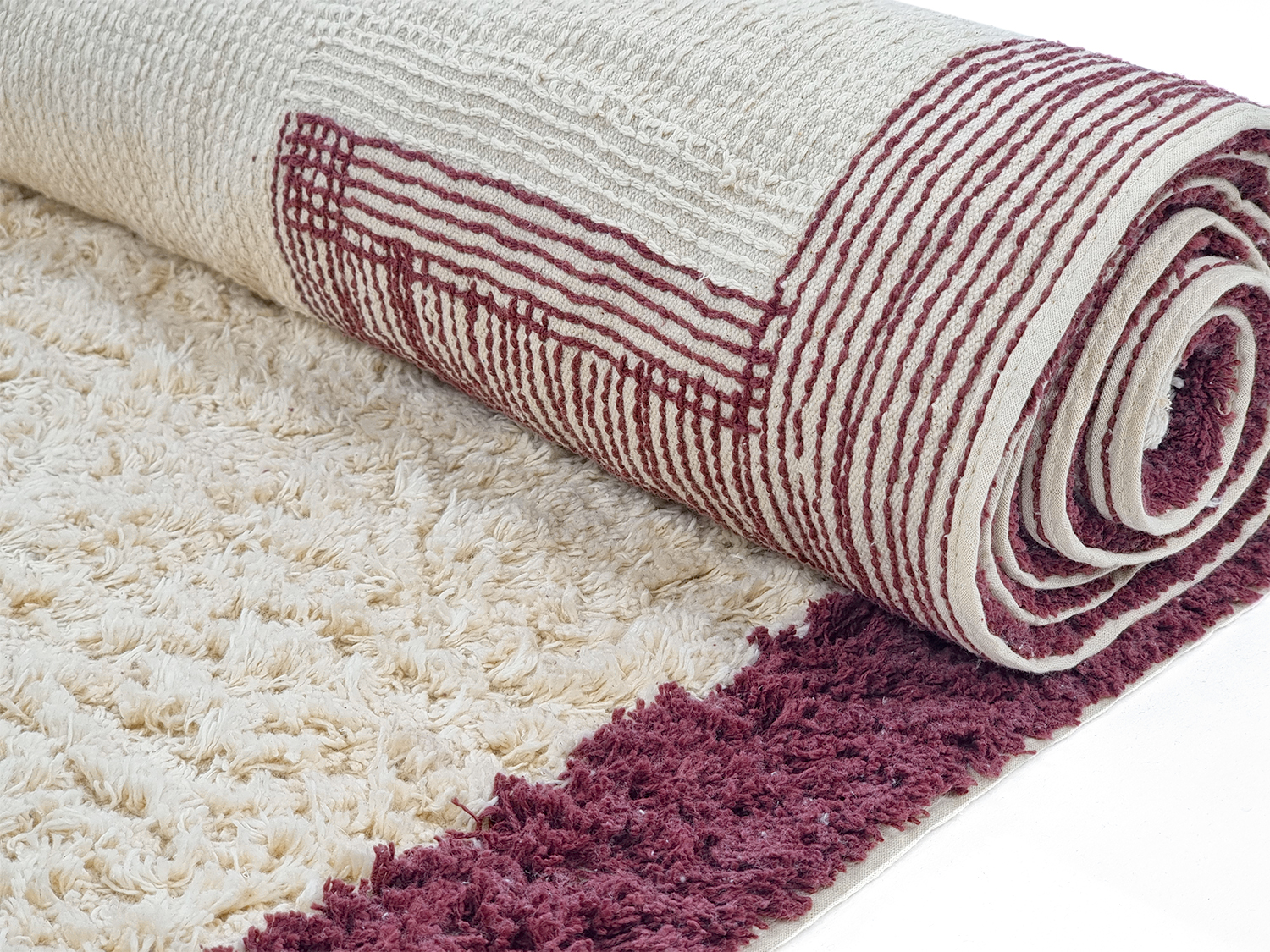 Tapetes felpudos - Ricco Natural Cotton Shaggy (offwhite/bordô)