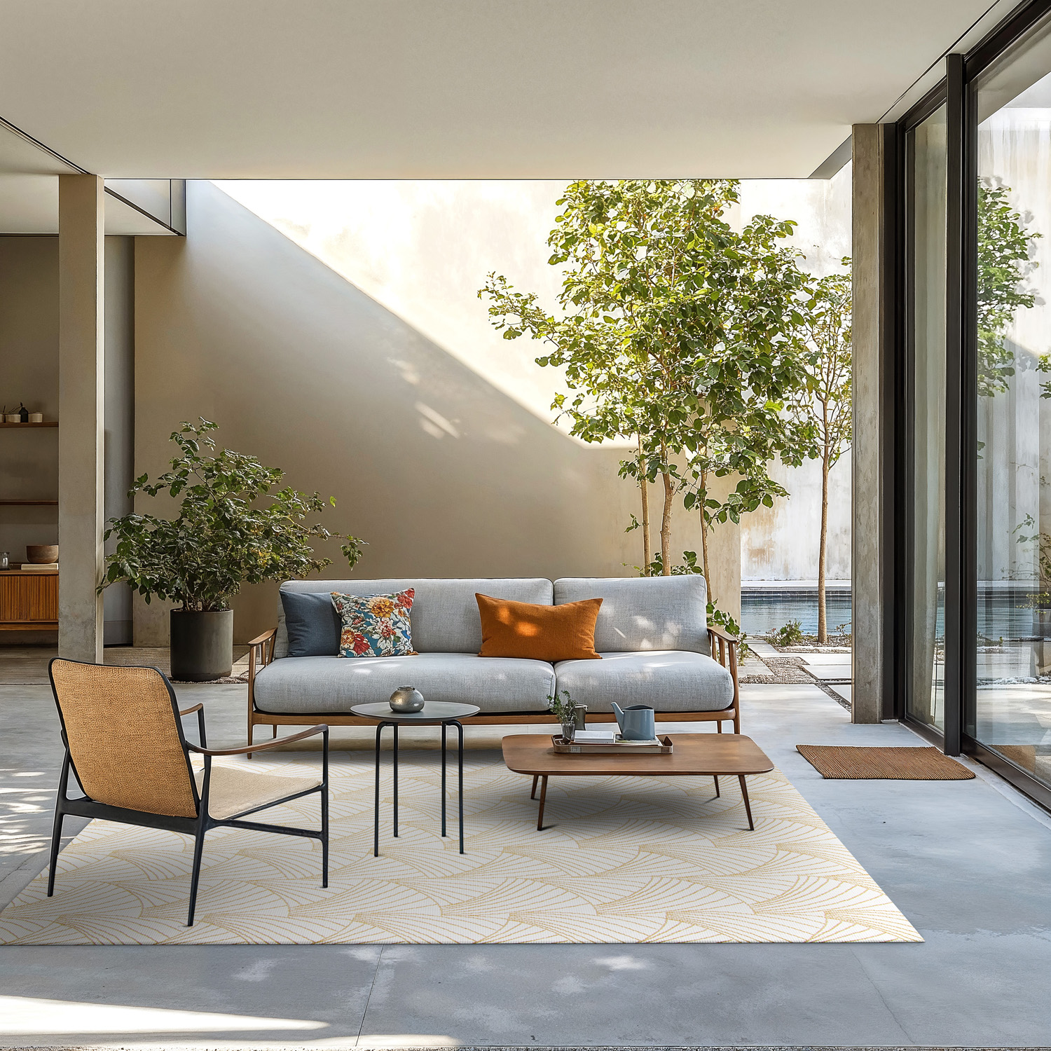 Esses tapetes são perfeitos para quem deseja criar um espaço acolhedor, seja na sala de estar, varanda ou jardim. Combinando estilo e funcionalidade, nossos tapetes são feitos de materiais resistentes que suportam as condições climáticas externas, como sol e umidade, sem comprometer a sua beleza.